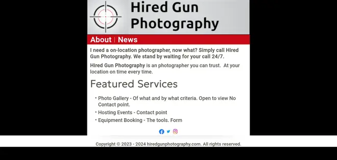 HiredGunPhotography.com was a serious project for a real estate photographer. Paid for and delivered on time and on budget.